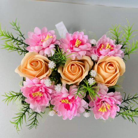 Декорация със сапунени цветя ” Розови и жълти рози”