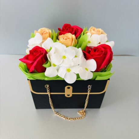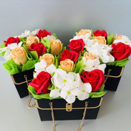 Декорация със сапунени цветя “Червени и прасковени рози”