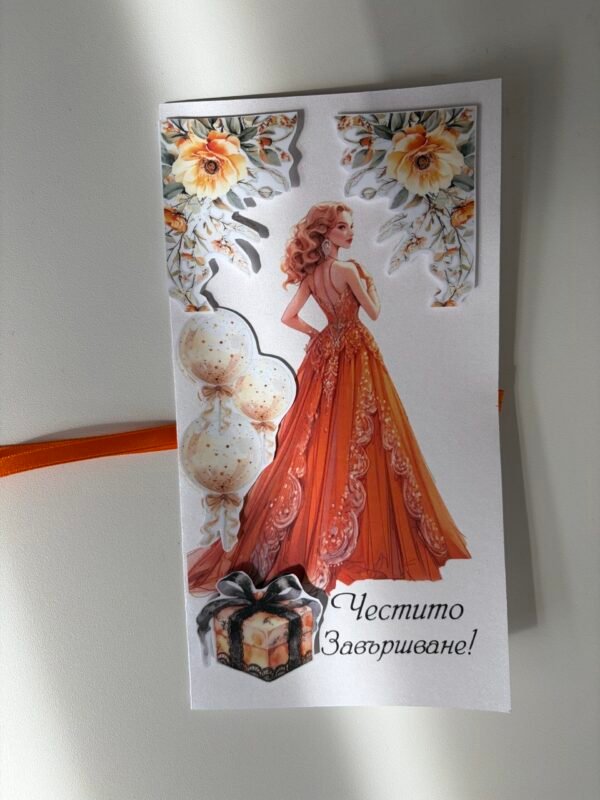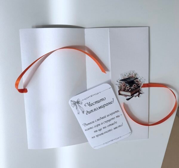 Елегантна картичка-плик за пари – идеалният начин да поднесеш подарък на абитуриент! Стилна и празнична визия, която съчетава изисканост и настроение за завършването. Вътре има достатъчно място за банкноти, ваучер или лично послание.