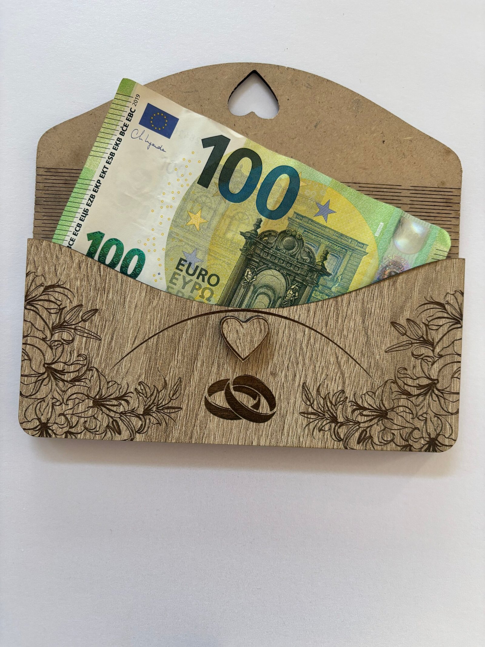 Търсите оригинален начин да подарите парична сума, който да остане скъп спомен? Нашето предложение е елегантен дървен плик, прецизно изработен чрез лазерно рязане и гравиране. Той превръща стандартния подарък в лично и стилно преживяване.