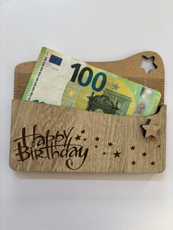 Луксозен дървен плик за пари „Happy Birthday“ 2