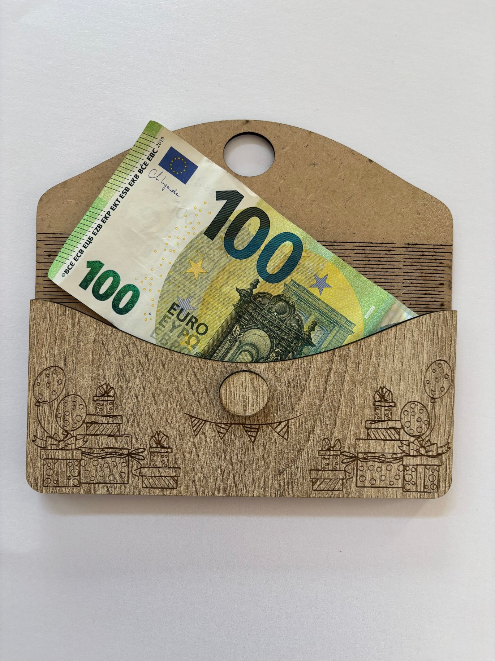 Търсите оригинален начин да подарите парична сума, който да остане скъп спомен? Нашето предложение е елегантен дървен плик, прецизно изработен чрез лазерно рязане и гравиране. Той превръща стандартния подарък в лично и стилно преживяване.