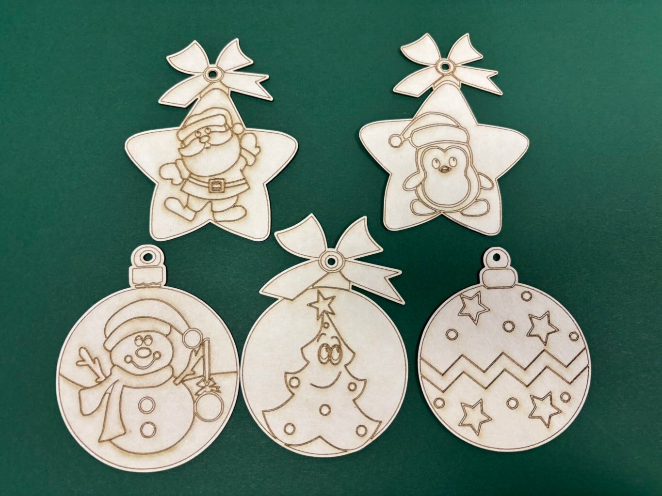 Създайте своя уникална коледна украса с този очарователен комплект дървени орнаменти за оцветяване! В комплекта има златен конец за закачане.