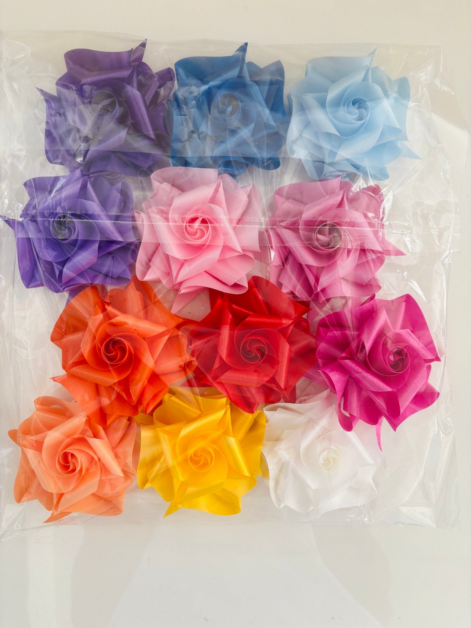 Всяка панделка е оформена като роза, създавайки обем и атрактивен акцент върху подаръка.