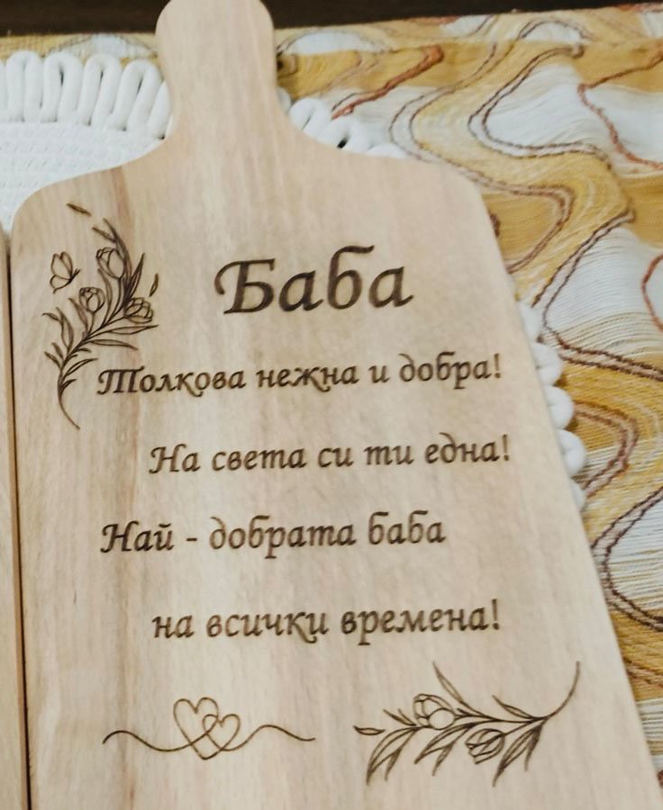 Ръчно изработена дъска с гравирано послание – “Баба”